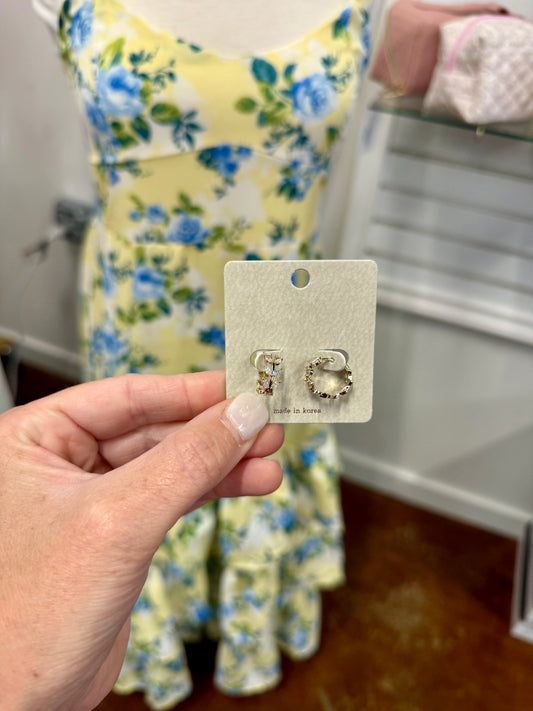 Stone Cluster Vine Hoop Earrings -