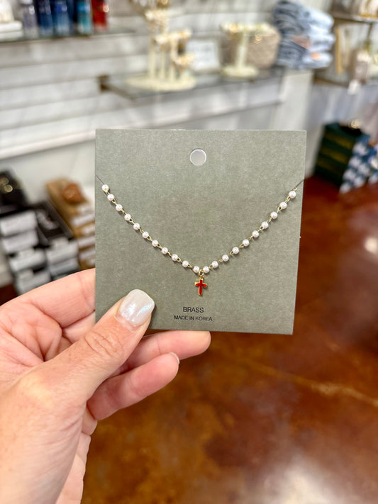Metal Bubble Cross Heart Pearl Pendant Necklace -